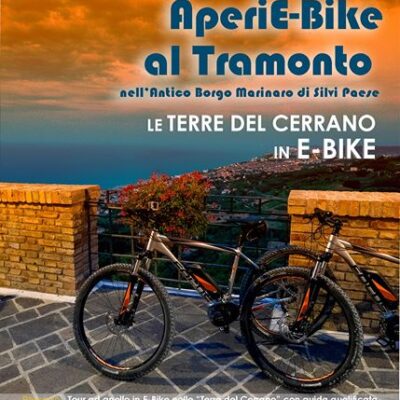 Giovedì 3 settembre dalle 18:00 alle 21:30 è in programma l’AperiE-Bike, una magnifica esperienza a bordo di una bicicletta elettrica! Si andrà alla scoperta delle bellezze naturali dell’Abruzzo e – in particolare – delle Terre del Cerrano al calar del sole: i colori romantici del tramonto renderanno l’esperienza ancora più piacevole e suggestiva.