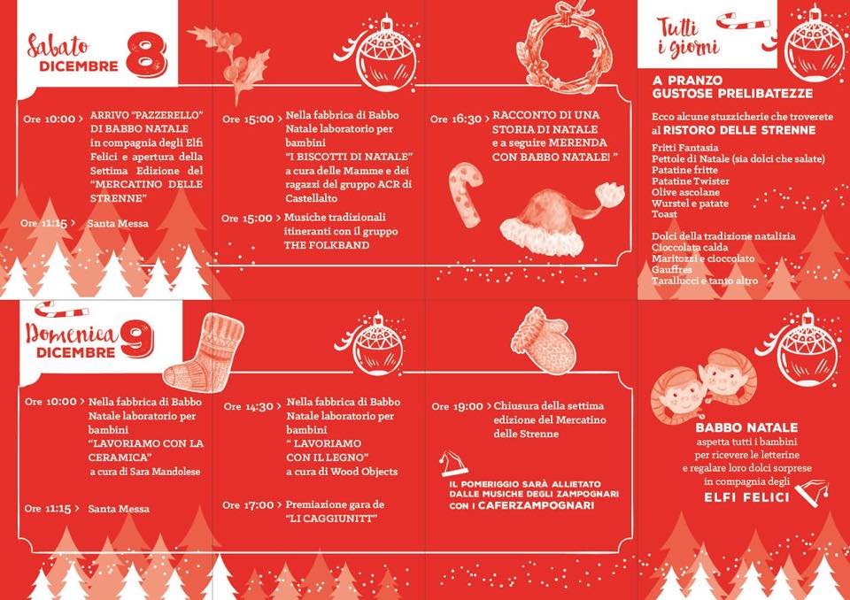 Torna il Mercatino delle Strenne di Castellalto: sabato 8 e domenica 9 dicembre 2018 sono le date di questo evento, dedicato a grandi e piccoli, per una “due giorni” da trascorrere tra artigianato, divertimento, tante golosità da gustare e la golosa gara de “Li Caggiunitt”