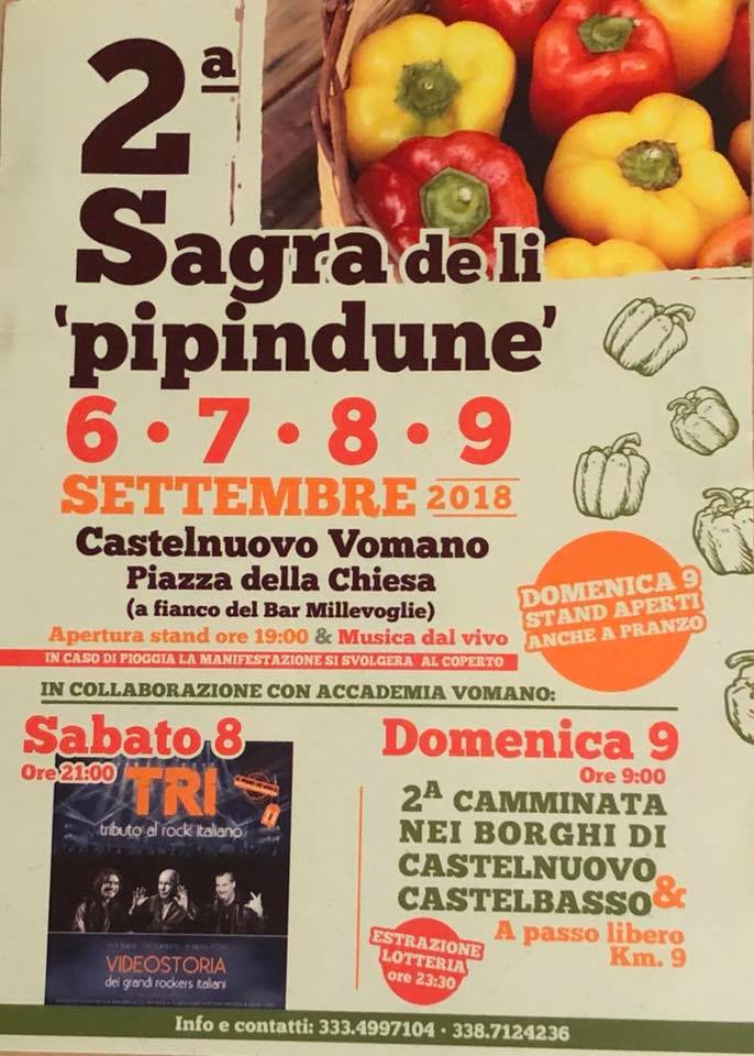 Dal 6 al 9 settembre 2018 appuntamento con la “Sagra de li pipindune” a Castelnuovo Vomano: tante squisitezze da assaporare, musica, allegria e divertimento per tutti i gusti