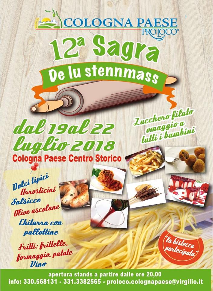Torna la “Sagra de lu stennmass”: a Cologna Paese dal 19 al 22 luglio ci sarà l’appuntamento, da non mancare, con la golosità più genuina da gustare in allegria