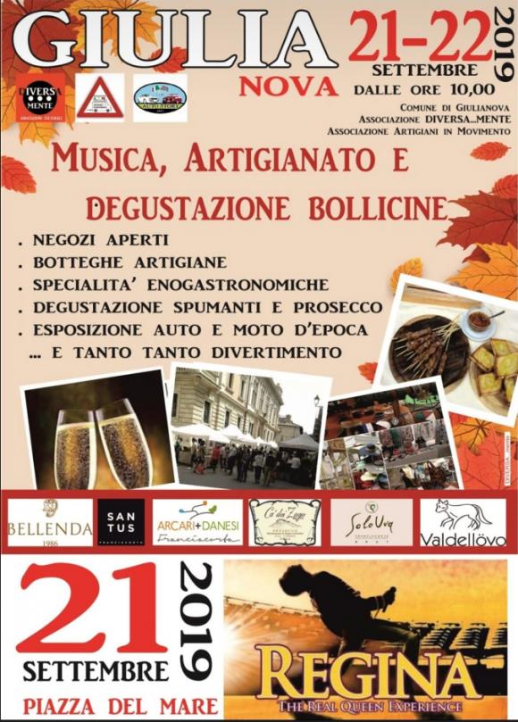 Giulianova musica, artigianato e degustazione bollicine si svolgerà il 21 e il 22 settembre 2019 in Piazza del Mare. Tutti a Giulianova Lido per due giornate all’insegna della creatività, della gastronomia più squisita e con il live della band REGINA The Real Queen Experience!