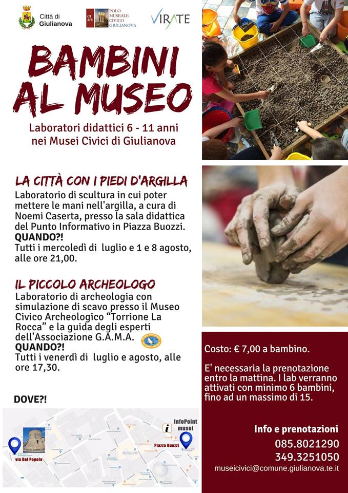 Continua a Giulianova l’iniziativa “Bambini al Museo”: per il mese di settembre sono in programma altre date per partecipare agli interessanti laboratori di creatività e di archeologia