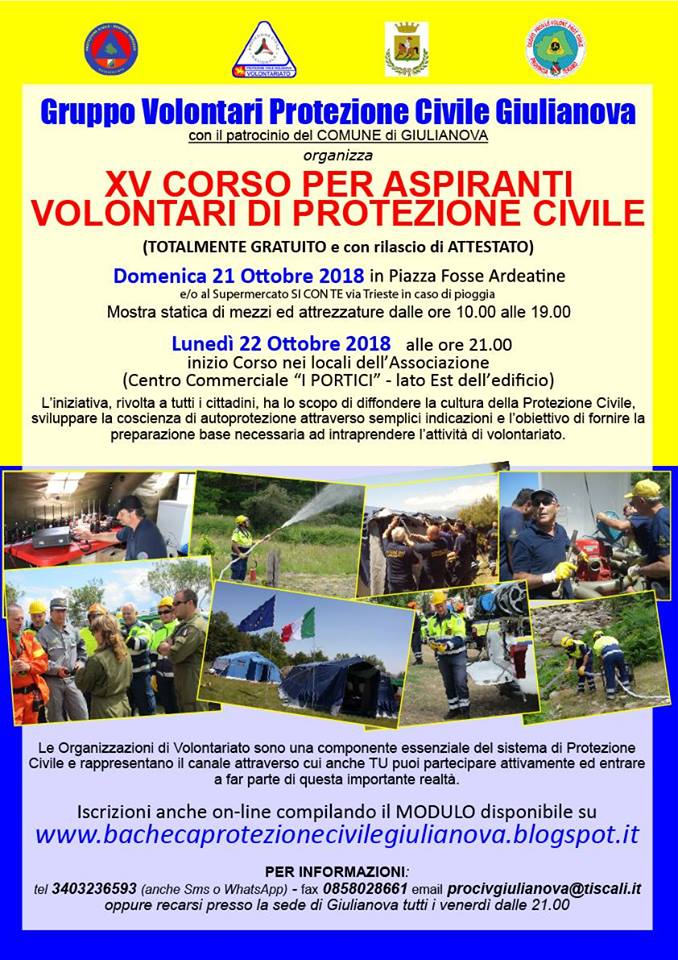 Ci si può iscrivere anche online utilizzando il modulo disponibile al link www.bachecaprotezionecivilegiulianova.blogspot.it.