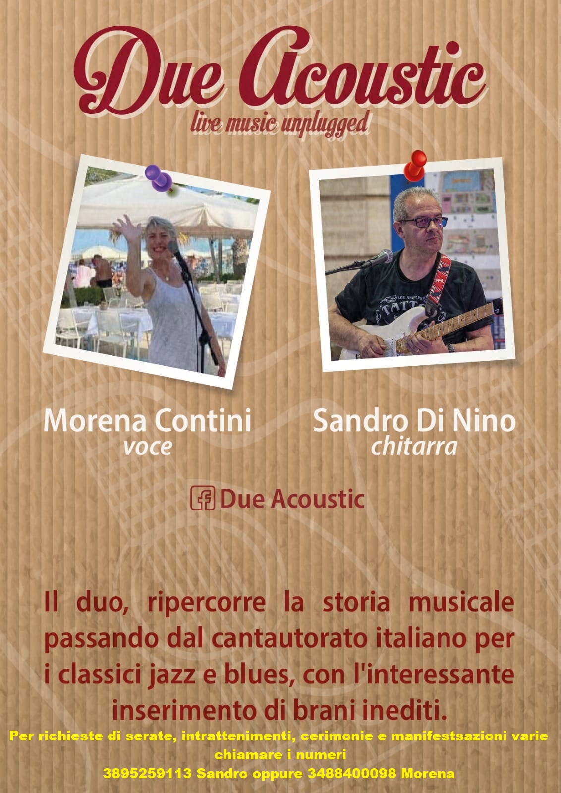 Morena Contini e Sandro Di Nino sono, rispettivamente, voce solista e chitarra acustica e loop dei Due Acoustic.