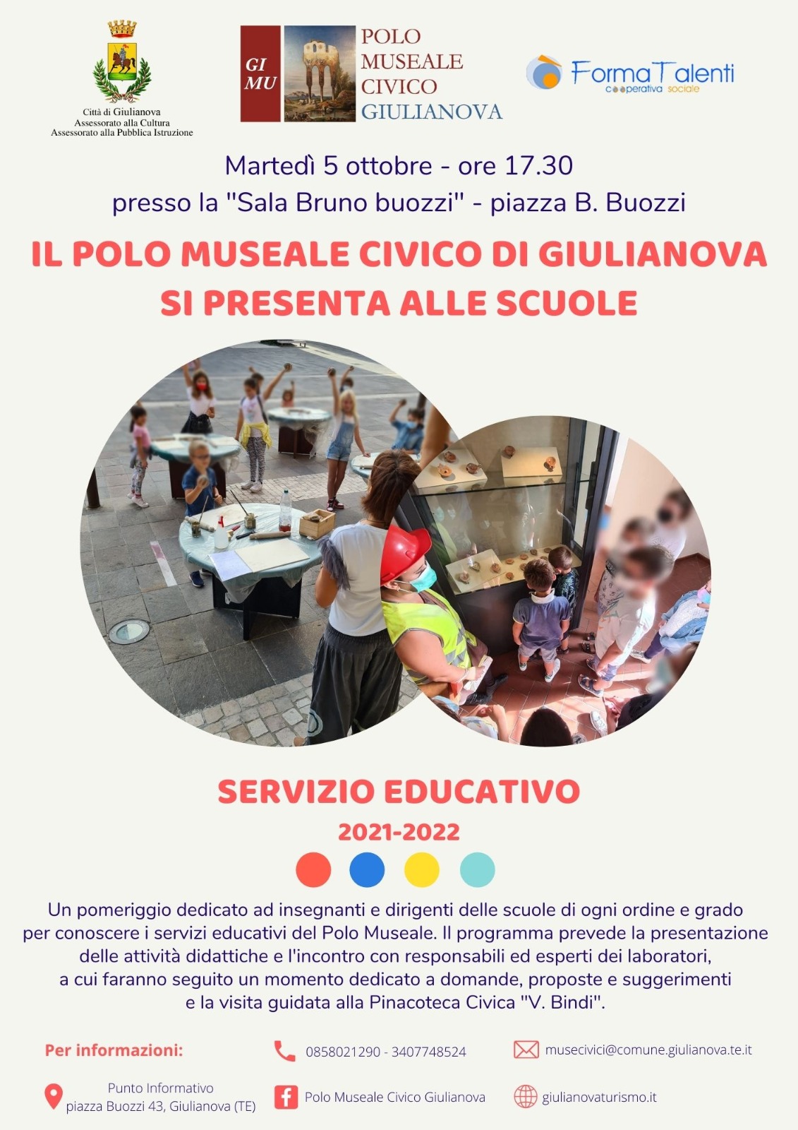 Martedì 5 ottobre, alle ore 17.30, in Sala Buozzi, a Giulianova, ci sarà la presentazione ai docenti del territorio delle attività 2021-2022 programmate presso il Polo Museale Civico.