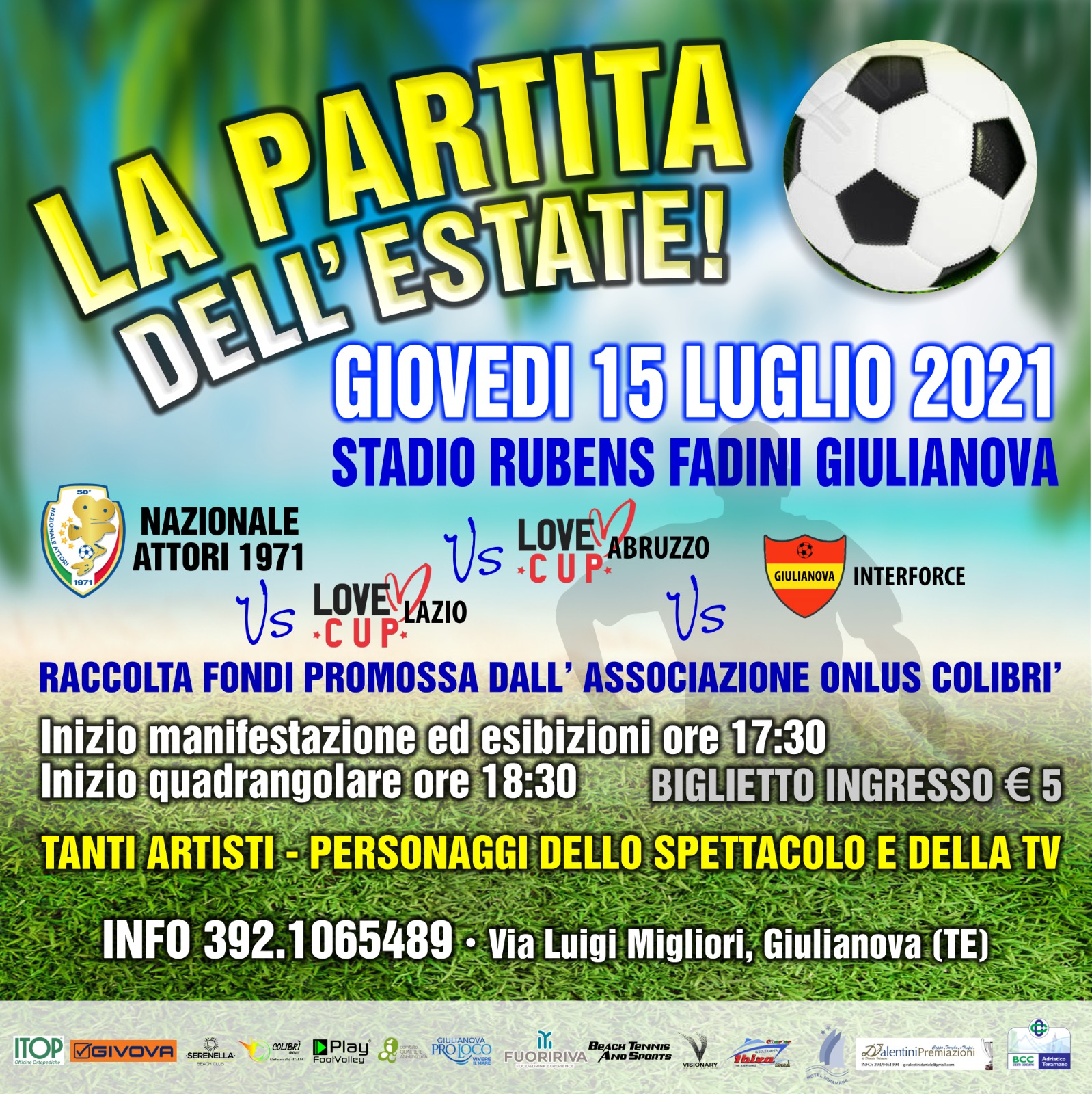 Giovedì 15 luglio, allo Stadio Rubens Fadini di Giulianova, si svolgerà La partita dell’estate. Organizzata per la raccolta di fondi promossa dall’Associazione Onlus Colibrì, prevede il pagamento di un biglietto di 5 euro.