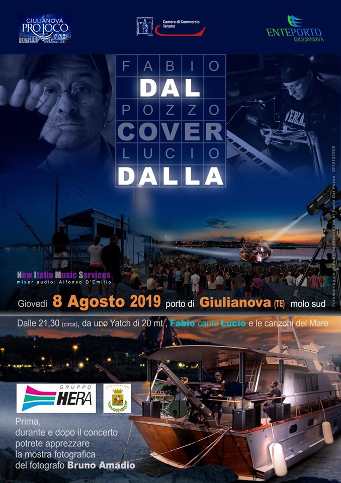 Due ore più tardi, poi, andrà in scena un concerto tributo a Lucio Dalla molto atteso: a partire dalle 21 e 30 salirà sul palco il cantante Fabio Dal Pozzo per l’appuntamento “Fabio canta Lucio e le canzoni del mare”. Dal Pozzo si esibirà con i brani dell’artista bolognese non dalla terraferma, ma da una piattaforma appoggiata sulle acque del mare che bagna il porto di Giulianova: una location a dir poco speciale e suggestiva, che promette di regalare uno spettacolo unico nel suo genere.