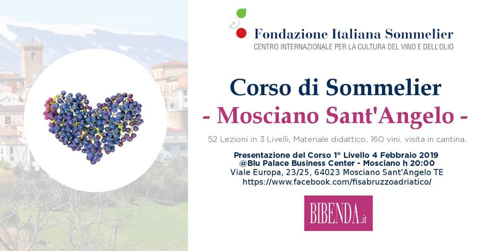 Il Corso di Sommelier, organizzato dalla Fondazione Italiana Sommelier Abruzzo Adriatico, verrà presentato lunedì 4 febbraio 2019 presso il Blu Palace Business Center: appuntamento a Mosciano Sant’Angelo per conoscere i dettagli di questo interessante evento
