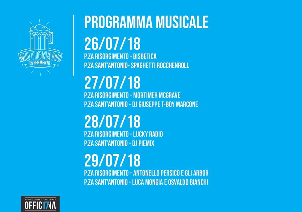 Ulteriori info sul programma dell’evento sono disponibili nella Pagina Facebook di Mutignano in Fermento.