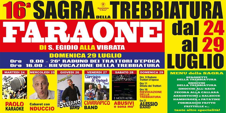 L’appuntamento è a Faraone, frazione di Sant’Egidio alla Vibrata, località nella quale si respira l’aria tipica e piena di fascino dei borghi medievali, nelle date che quest’anno vanno dal 24 al 29 luglio.