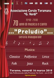 Preludio” è la serata inaugurale, con ingresso gratuito, che si svolgerà nella Sala Polifunzionale della Provincia, in Via Comi, a Teramo, a partire dalle ore 21.00 del 16 marzo.