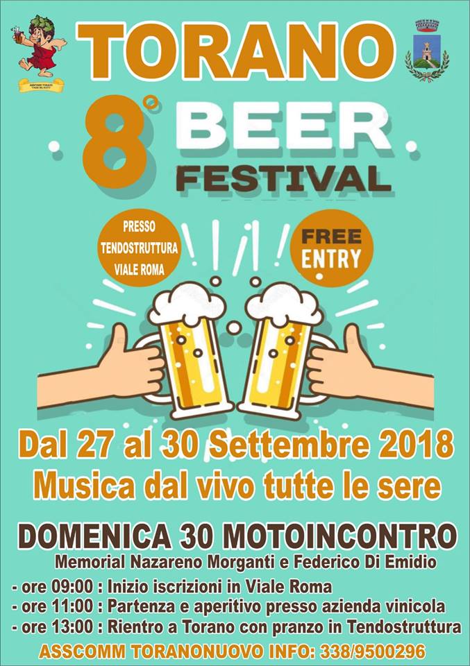 Dal 27 al 30 settembre è tempo di partecipare al Torano Beer Festival: un appuntamento per celebrare la migliore birra con tante golosità, musica “live” tutte le sere e il motoraduno