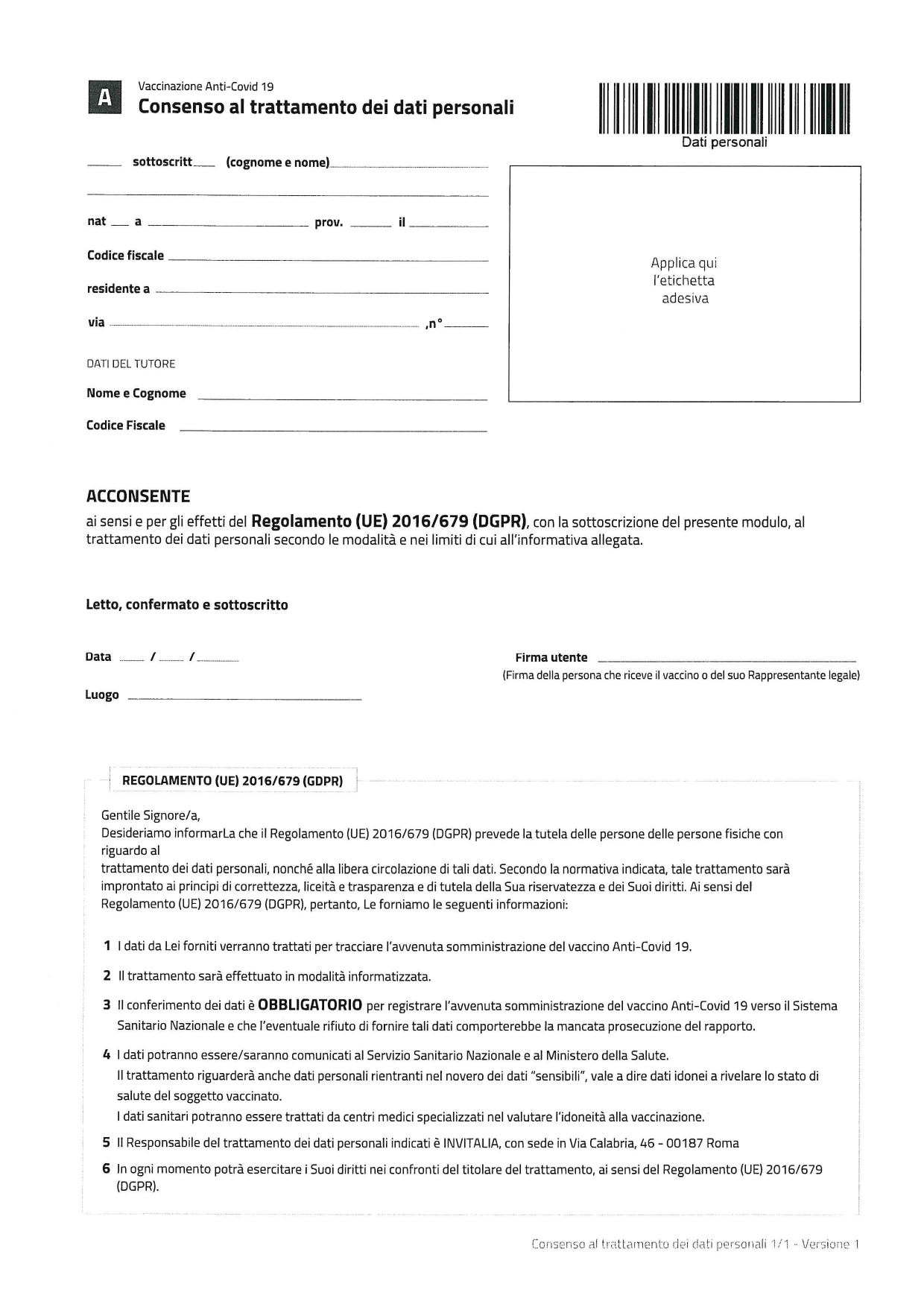La modulistica da consegnare, correttamente compilata e firmata, in sede di vaccinazione può essere scaricata dal portale web del Comune di Giulianova oppure è reperibile in cartaceo presso le farmacie, le sedi comunali e il Segretariato Sociale.