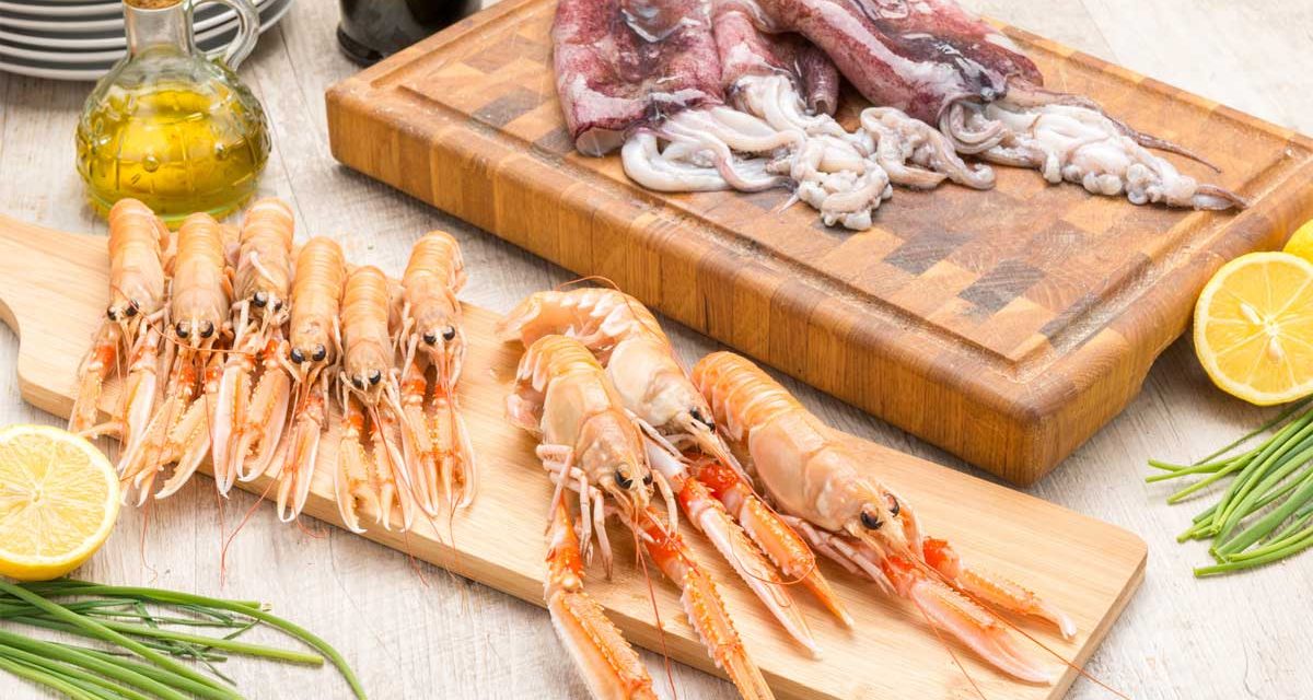 Sciacquare le vongole depurate, pulire i calamari, le sogliole e sgusciare gli scampi per ricavarne la polpa.