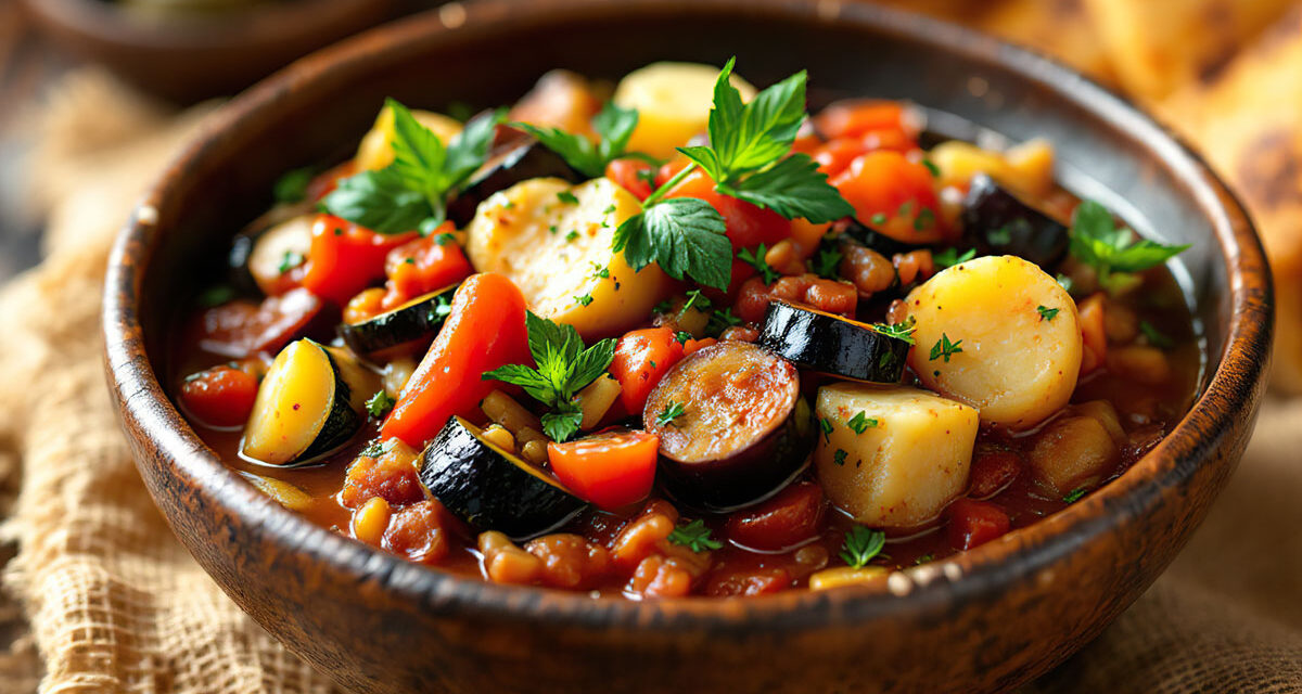 La ciambotta è una tipica ricetta abruzzese in cui le verdure sono l’ingrediente principale, con i loro colori e i loro profumi. Si serve in un contenitore di coccio bello alto, che mantiene l’aroma dei suoi ingredienti e la temperatura ideale a cui portarla in tavola.