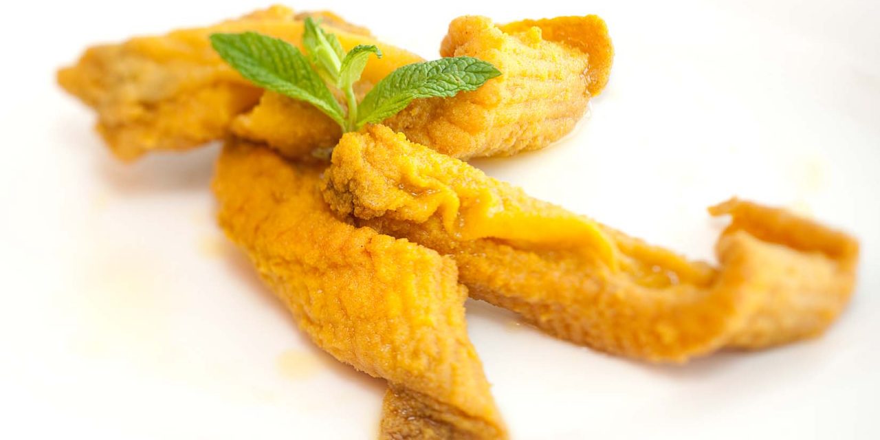 Tagliate il palombo a listarelle, infarinatelo e fatelo dorare in una padella con olio d’oliva. Scolatelo e lasciatelo asciugare con della carta paglia per non farlo ammorbidire troppo. A parte, fate bollire il litro d’aceto su una pentola di coccio e, quando bolle, aggiungete la bustina di zafferano. Posizionate le listarelle di palombo in un tegame o in un vasetto di vetro, poi copriteli con l’aceto e lo zafferano. Si può gustare già dopo un giorno di marinatura nell’aceto, scolato e servito come ottimo antipasto di mare. Si conserva molto bene per circa 20 giorni.